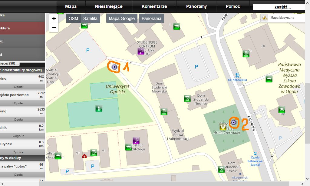 Gandalf*: Po założeniu ostatnio obiektu Centrum przesiadkowe w Opolu zauważyłem na mapie w pobliżu dwa dziwne znaczniki: . Po najechaniu na nie pojawia się pusty wąski "dymek" a po kliknięciu otwiera się obiekt: 1 - Toruń ul. Mickiewicza 58; 2 - Jelenia Góra 69. Coś tu jest chyba nie tak ?